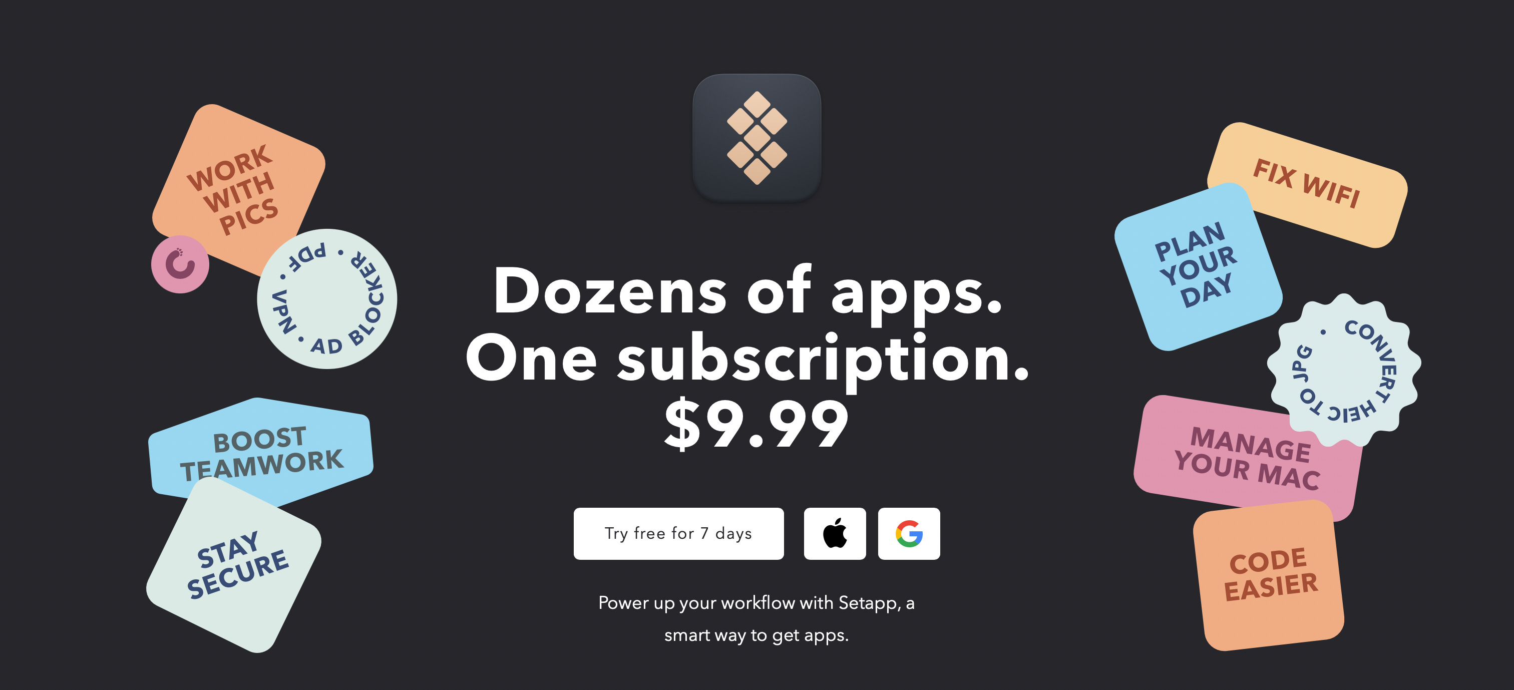 Setapp is an app subscription service for apps for Mac and iOS. More than 240 apps available on Setapp help users tackle daily tasks like editing, design, time and money management, coding, writing, working with multimedia, and device maintenance.